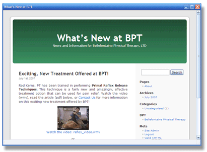 Bellefontaine Physical Therapy is proud to announce BPTblog.com as a new, state of the art way to keep it's visitors up to date with news, updates, and information.